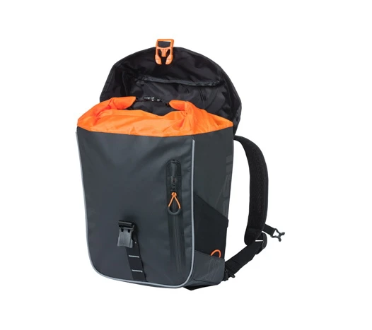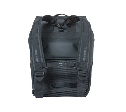 Met het hook-on systeem hang je de praktische en sportieve tas gemakkelijk aan je bagagedrager. Als u te voet off-road wilt gaan, kunt u de rugzak comfortabel op uw rug dragen. De fietsrugzak heeft een gewatteerde rug en gewatteerde schouderbanden. En als je de Basil Miles Tarpaulin fietsrugzak op je bagagedrager draagt, kom je nooit bezweet aan op je bestemming. Omdat het gewicht van de tas dan wat lager is, rijd je veel stabieler (en dus veiliger). Dit is ideaal als u een korte of lange fietstocht wilt maken. Of als je op fietsvakantie wilt gaan.