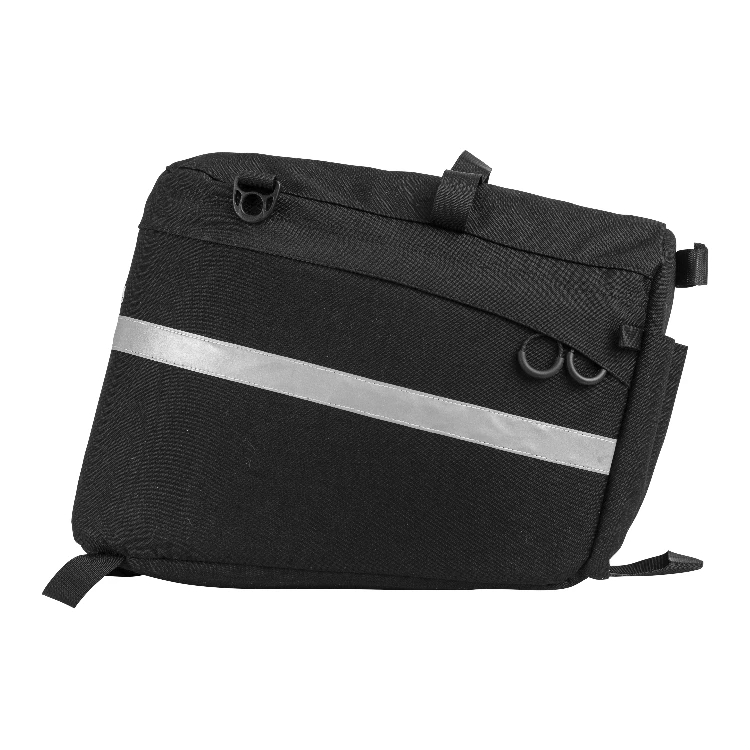 Met het eenvoudige gordelsysteem kan de tas veilig aan de bagagedrager en zadelpen worden bevestigd. Met deze tas kan de fiets worden opgevouwen terwijl de tas nog vastzit. Hiervoor maakt u gewoon de gesp los, draait u de tas 180 graden en bevestigt u hem aan het hoofdframe.