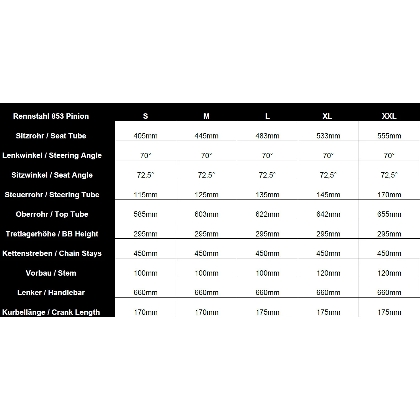 Kenmerken van de Rennstahl 853 Pinion