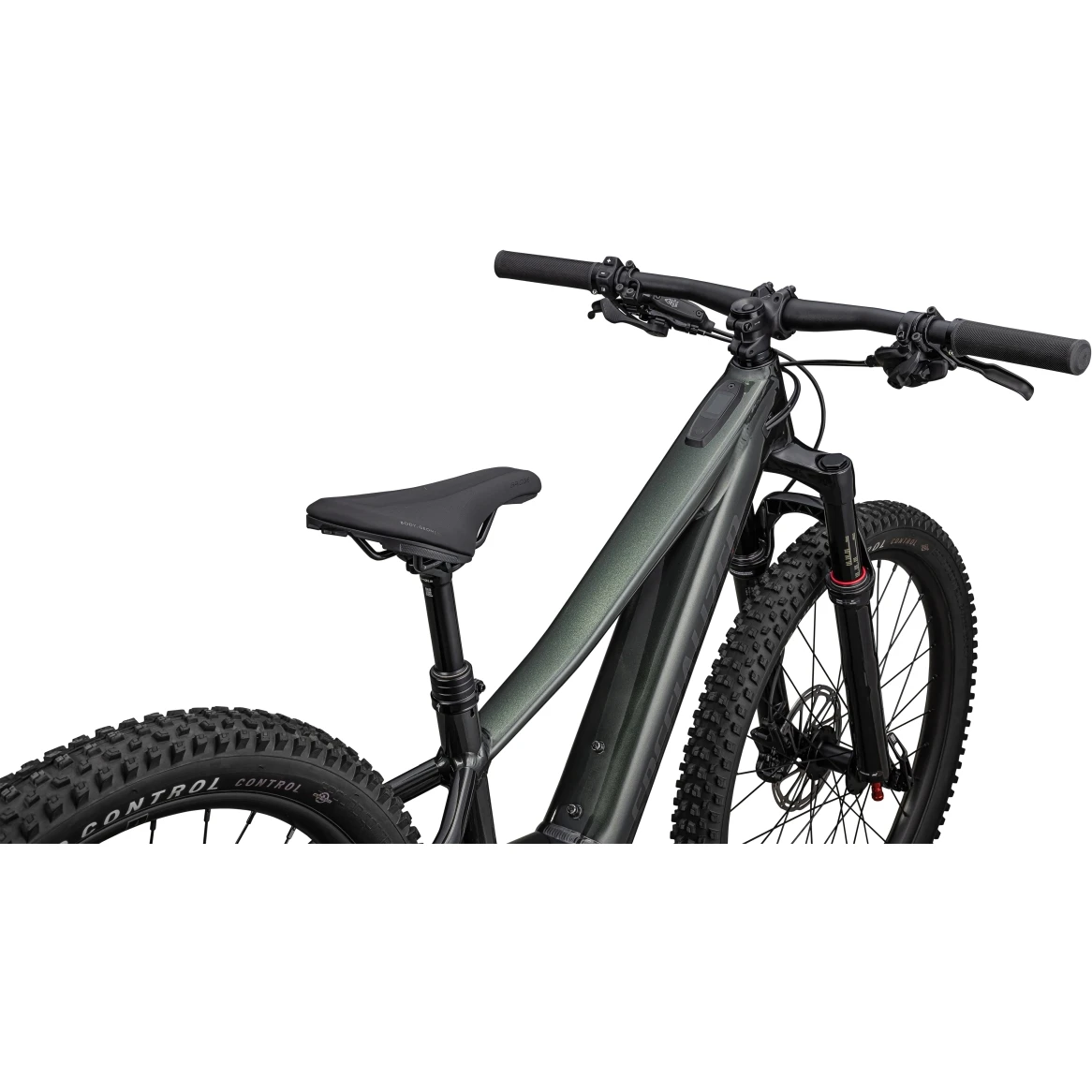 Elk detail van de Levo SL Kids is ontworpen om perfect te passen bij jonge rijders van 125 tot 145 cm lang. De lage standoverhoogte zorgt voor zelfvertrouwen door het gemakkelijk op- en afstappen en zorgt ervoor dat zowel 6- als 11-jarigen zich comfortabel voelen op de fiets. In samenwerking met onze experts van Retül Bikefitting is de progressieve geometrie herzien en bevestigd: De vlakkere stuurhoek en het verlengde bereik resulteren in meer stabiliteit, terwijl de korte achtervorken zorgen voor maximale wendbaarheid en een beter reactievermogen. De RockShox Reba Air verende voorvork, SRAM’s NX versnellingen, SRAM’s Level T hydraulische schijfremmen met verstelbare hendels en een verlaagde zadelpen verbeteren de downhill prestaties. De Levo SL Kids is klaar voor ruige trails, grote sprongen en lange ritten.