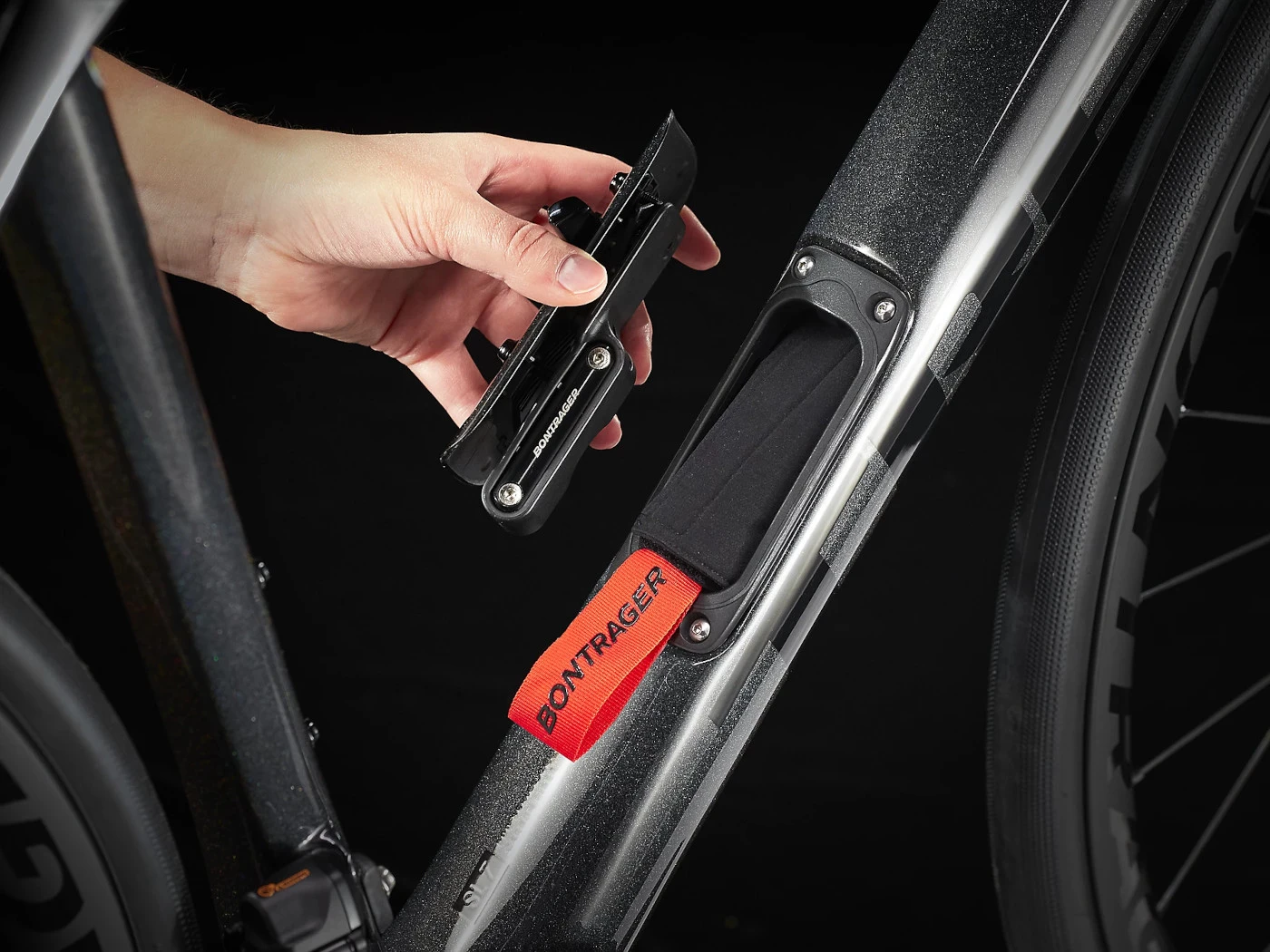 - in het frame geïntegreerd slank opbergvak voor gereedschap